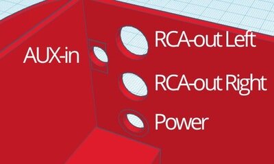 I went back to the drawing board with the amp design, this time with the goal to make the layout more symmetrical and to move the AUX input to the back of the amp.