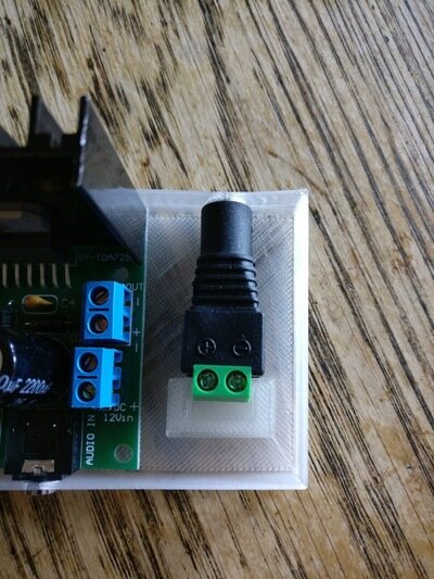 I bought an inexpensive 15W amp board, some RCA jacks and 12V DC power adapters with connectors from Amazon.