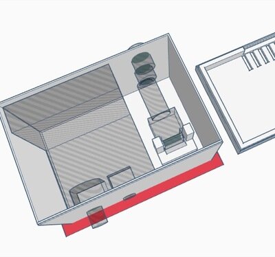 The amp is just a barebones board without any enclosure. I took measurements of the amp board and of the other various components I used, and then went to work in Tinkercad.
