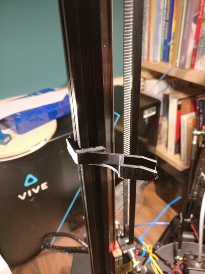 In the end it worked quite nicely. The brackets are held in place with friction from the weight of the tablet and the tightness of clipping in to two sides of the pillars. I added some T-nuts below the brackets to ensure they didn’t suddenly slip if the printer vibrates too much during operation.