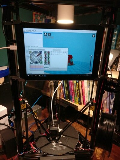 The tablet is large enough that it fits between two of the main upright pillars of the printer, so I figured I could design some simple brackets that would attach to the printer frame and hold the tablet in place.