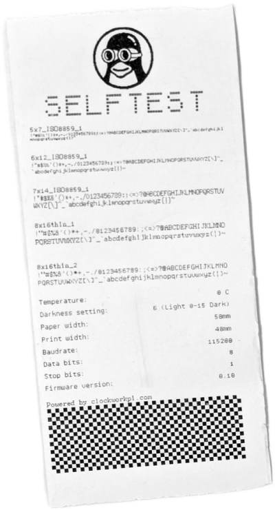 It printed. Logo, fonts, QR code, system info, the lot.