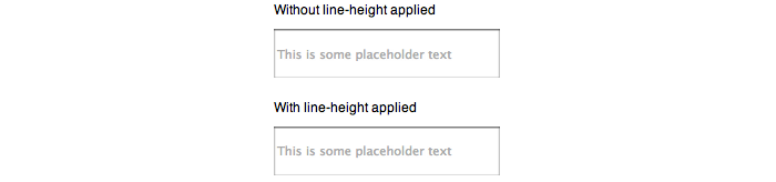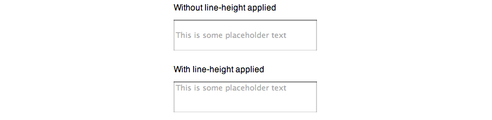 Anyway, enough background, on to my problem. First of all, let’s see how browsers handle placeholder text with and without a line-height applied to the input.