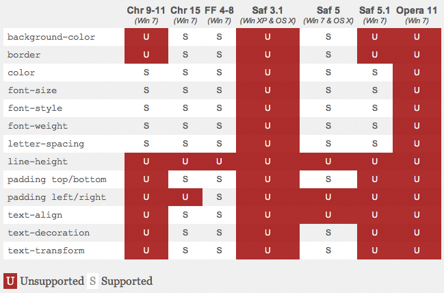 This issue rears its ugly head in one way or another in my day to day life. First of all, regarding the ‘modern’ browsers that need to be supported, we’ve got: