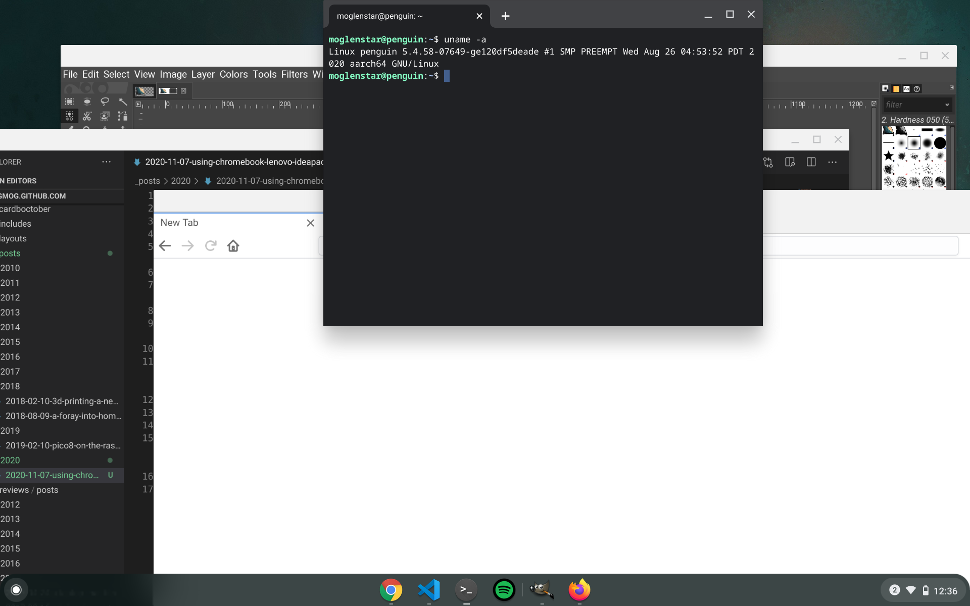 So far I’ve installed VS Code, GIMP, Firefox and a bunch of terminal-based tools/apps (Git, Jekyll, etc,) I’m writing this post from that very environment.